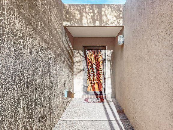 Nestled on a peaceful cul-de-sac near the breathtaking Sandia Mountains, this beautiful one-story home offers both serenity and convenience. Large windows fill the space with natural light, highlighting the stunning views. The inviting great room features a cozy kiva fireplace, while hardwood and brick floors add warmth and character throughout. The kitchen seamlessly opens to the dining area, creating the perfect eat-in space. The spacious primary suite boasts a jetted tub, separate shower, and walk-in closet, while the second bedroom has an adjacent 3/4 bath. A true gem in a prime location--don't miss this opportunity!