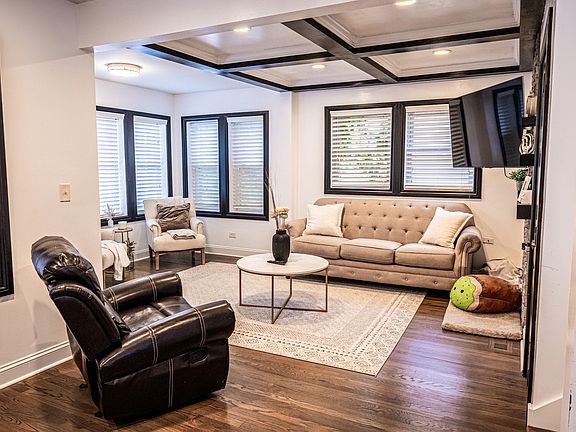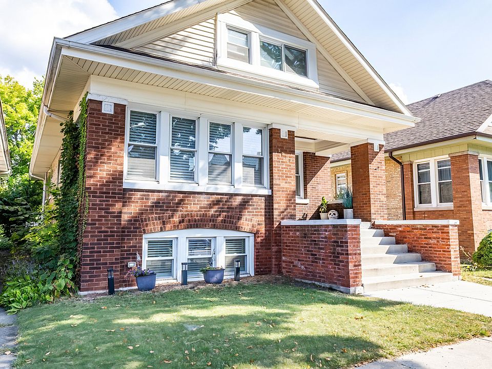 Beautiful 3/4 Bedroom, 3 Bath Brick Bungalow Stunning jumbo-sized custom kitchen with quartz island, marble backsplash, wine cooler, and all-new stainless steel appliances. Refinished hardwood floors flow through the spacious living and dining rooms. Main floor includes a bonus room-perfect for an office or extra bedroom. Retreat to the huge master suite with double closets, or enjoy the fully finished basement with family room, 2 bedrooms, and tiled storage/laundry. High-efficiency HVAC, big backyard, 2 car garage plus car port and plenty of space for entertaining complete this must-see home! BEING SOLD AS IS. NO CREDITS.Property is well kept.