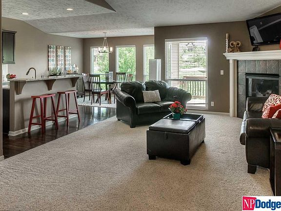 Deb Ellis, M: 402-706-1003, dellis@npdodge.com, www.npdodge.com - GORGEOUS WALKOUT RANCH ~ BACKS TO TREES! Pristine Condition-Great Open Flr Pln w/Spacious Rm Sizes & Beautiful Stone Fireplace, Contemporary Color Scheme Throughout, Wood Flrs & Drop-Zone. Kitchen Offers Eat-in Bar, SS Appliances, Granite Counters & Gorgeous Tile Backsplash. Fully Finished Basement with Custom Kids Play Area &Lots of Living Space. Private Backyard. Walking Distance to Park!