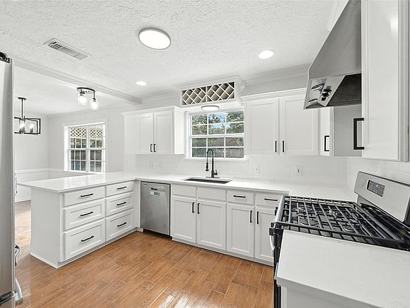 This beautifully updated 4-bedroom, 2.5-bath home features fresh exterior and interior paint, new carpet, LVP flooring, light fixtures, and refreshed bathrooms. The open kitchen shines with painted cabinets, quartz counters, stainless appliances, a wine rack, and bright finishes. Enjoy the spacious living room with wood beams and French doors leading to a patio with built-in BBQ. Outside, a sparkling fenced pool makes this home perfect for entertaining and everyday living.