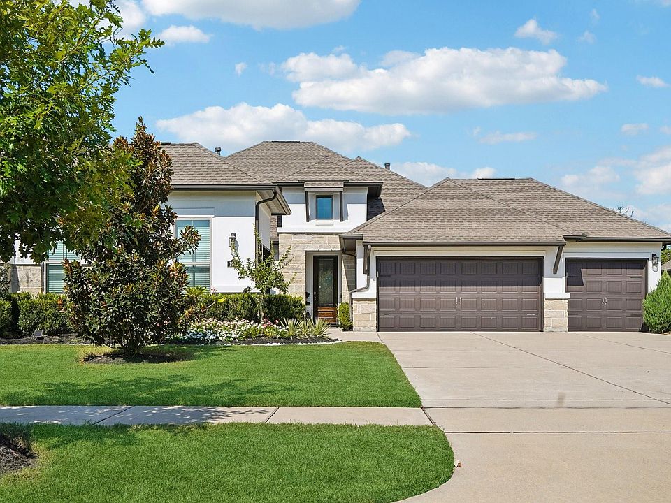 Stunning Coventry Home on 80' lot on a Greenbelt lot with unique view. ($80k lot premium lot). This home stands out with a 4-car garage, White Oak hardwood floors, and a spacious kitchen with updated features. Enjoy the beautiful greenbelt view from living area as well as the dining area, adorned with upgraded lighting and wallpaper. The master suite boasts a large closet with room for stylish lighting and seating. Well-maintained lawn with recent landscaping updates. This home offers 4 bedrooms, 3 bathrooms, and 3305 sq ft of living space. Don't miss the chance to own this elegant single-family home in a prime location. Furnishings available for purchase. Inquire today! Literally move-in ready if you would like to purchase furnishings. Click on Virtual Tours for added viewing pleasure!!