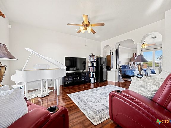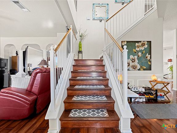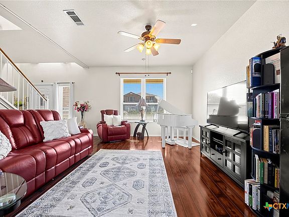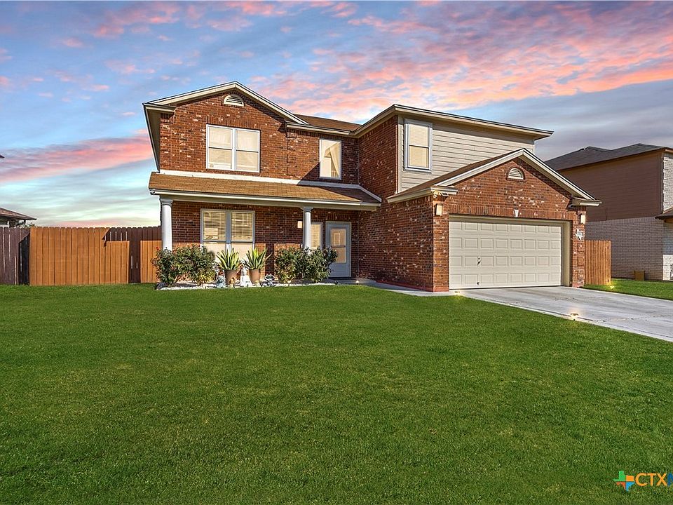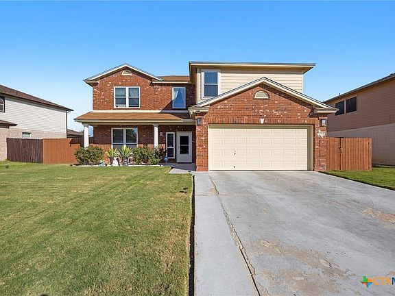 This beautiful home sits on an oversized .25-acre lot in a low traffic community with quick access to 195 and Austin. From the moment you pull up, you’ll notice the charming red brick exterior, lush golf course style lawn (with full sprinkler system), large covered front porch, and spacious front yard that give it amazing curb appeal. Inside, you’ll find an immaculate home that feels both open and functional. As you enter, you’re greeted by a welcoming foyer—to the left is your formal living room, and to the right is a large family room with a cozy fireplace and tons of natural light. The kitchen features granite countertops, white cabinetry, stainless steel appliances, and plenty of storage, plus a bright dining area with a big portrait window overlooking the backyard and casita. Downstairs also includes a flex room currently used as a bedroom, a half bathroom, and a laundry room with great cabinet storage. Walk up the beautiful wood risers to the second story and you’ll find a massive primary suite with one of the biggest bedrooms and closets you’ve ever seen! The primary bath features a large walk-in shower, soaking tub, and double vanities. Two additional oversized bedrooms (each with walk-in closets) and a large game room complete the upstairs. The backyard is a true retreat that promotes relaxation and entertaining, with a covered back porch, a casita currently used as an art studio, and a stone-lined wood deck and grilling area—all within a private backyard with no immediate rear neighbors. Recent updates include new windows, a newer HVAC unit (2024), and a roof replaced in 2022, giving you peace of mind for years to come. The upgraded floors with no carpet throughout, stylish light fixtures, and thoughtful finishing touches make this home truly rare and incomparable to most listings on the market today. Plus, the home includes a water softener to combat the hard Central Texas water—another thoughtful feature that adds comfort and long term value.