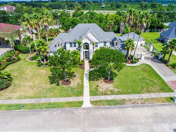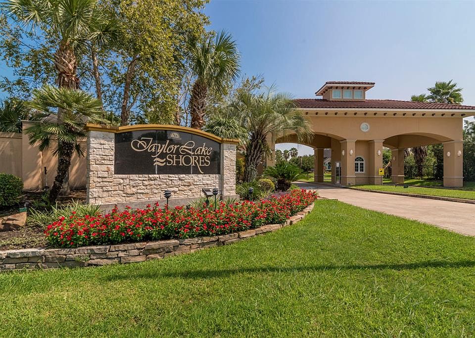 Stunning 4 bedroom, 4 full and 1 bath home in gated Taylor Lake Shores. Grand 2 story Brighton Custom Home with spacious driveway leading to an automatic gate, 4 car garage & auto court. Grand entry with leaded glass door opens to a fabulous floor plan! Hardwood flooring in both formals. Family room with spacious television cabinet that stays with speakers. Family room also has recent French door & dual sided fireplace shared with the outside covered patio. Kitchen with granite counters, center island, chef's desk, & a gorgeous breakfast area with faux finish tray ceiling. Luxurious master suite & bathroom accented with travertine tile! Heated backyard pool with flagstone decking, spa & rock waterfall complete with a pool house that includes a full bath for all your entertaining needs!