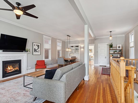 Immaculate single-family home on a picturesque tree-lined street perfectly located in the heart of West Lakeview steps from Hamlin Park and a close stroll to the Roscoe Village strip, great shopping, trendy restaurants and the Paulina Brown Line. Amazing curb appeal abound for this charming home with a welcoming front porch perfect for morning coffee or evening drinks. The thoughtfully designed main living level has an expansive front living/dining area featuring a gas fireplace with custom mantle and flat screen TV hook up above as well as a classic built-in dining hutch. Rehabbed in 2018, the eat-in chef's kitchen features white cabinets with subway tile backsplash, quartz countertops, stainless steel appliances, designer lighting and a large butcher block island with counter seating. No detail was spared reimagining this fantastic space that leads directly out to the newly trexed 14x12 deck that is ideal for grilling or al fresco dining. Completing the flawless main living level is an additional flex space ideal for a den or kids play area and a timeless full bathroom with clawfoot tub and pedestal sink. The upstairs level has three generous bedrooms all with great closet space, skylights galore and a well appointed full bathroom with a private water closet, walk-in shower with separate soaking tub and double-bowl vanity. The lower-level has an amazing family room/kids space with a gas fireplace, mechanical/laundry room, bonus storage room, 4th bedroom and the third full bathroom making for a perfect setup for out of town guests. Completing this one of a kind home is an outdoor lover's paradise with a massive grass yard, new brick patio and a landscaped section for the gardener in you. A must see home on the best block in the West Lakeview Hamlin Park area located in the Jahn School District.