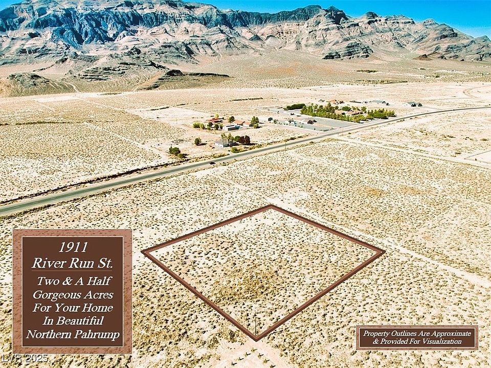 1911 River Run St. Is A Splendid Property With Fantastic Views Of Shadow Mountain~~~This Great 2.5 Acre Parcel Is Located In Beautiful Northern Pahrump Less Than 15 Minutes To The Center Of Town & Nicely Situated In An Area With Larger Sized Parcels, Wide Open Spaces & Plenty Of Room To Roam~~~Power Is Already At The Rear Property Line & It Is Zoned For Private Well & Septic~~~As With Most Pahrump Acreage, Water Rights Are Required To Drill A Well, But Don't Let That Deter Your Plans Of Having A Large Property, As This Lovely Parcel Is Priced Accordingly & Your Private Well Is Not As Complicated As It May Seem~~~You'll Have Outstanding Sunsets & More Than 100,000 Square Feet To Work With When Planning Your Future Home~~~1911 River Run St. Has Exceptional Potential, Don't Let Someone Else Get This Piece Of Pahrump, Make It Yours At This Price Today!