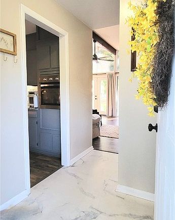 Two decksGranite countertopsLarge backyardFloor-to-ceiling windowsLaminate flooringNew plumbingFire pit