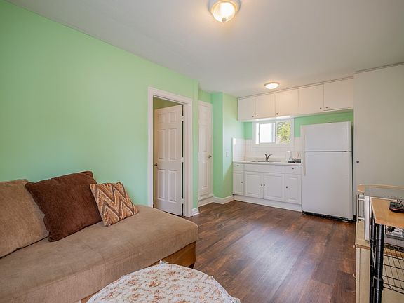 refrigerator, and a tasteful tile backsplash, inviting culinary adventures. Retreat to the generously-sized bedroom, exuding warmth and brightness, boasting its