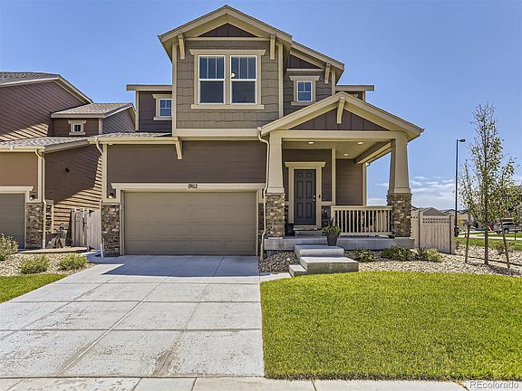 ** Lender incentives available for this home! Ask your agent for details** Stunning 2-story luxury home in desirable Altaira at High Point! A like-new, move-in ready property, this spacious 3,400 sq ft home with 4 bedrooms + office / 3 baths boasts the largest floor plan in the community and over $100K in premium builder upgrades. Situated on a corner lot, this home is a rare find with outstanding curb appeal and phenomenal resale potential. Step inside through a covered front porch into a welcoming grand foyer leading to an open-concept kitchen, dining, and living space. The chef’s kitchen showcases upgraded cabinets, quartz countertops, modern hardware, and designer backsplash. Off the garage entry you’ll find a mudroom and a deluxe walk-in pantry. The spacious living room features a gas fireplace, tiled accent wall, and sun-filled south-facing windows. The main floor office includes French doors for privacy. Upstairs, the primary suite retreat offers a spa-inspired 5-piece ensuite and a dream walk-in closet. Three additional bedrooms include one with an extra walk-in closet. The upstairs laundry room with utility sink and cabinetry provides everyday convenience. A full 8’ unfinished basement is ready for your personalized finishes, while currently serving as a flexible storage/gym/play area. The backyard is designed for outdoor living, complete with a covered patio extension, extended concrete, and professional landscaping. Additional highlights: upgraded flooring throughout, irrigation in front and back, attached 2-car garage with EV charging station, and mountain views from High Point. Location is unbeatable—just minutes to DIA, walking distance to Gaylord Resort, and close to the new Sprouts Farmers Market. Coming soon: Link 56 retail development (featuring a Target store), High Point Park with pickleball courts, athletic fields, bike trails, playgrounds, and dining & entertainment options. Don’t miss this opportunity—schedule your showing today!
