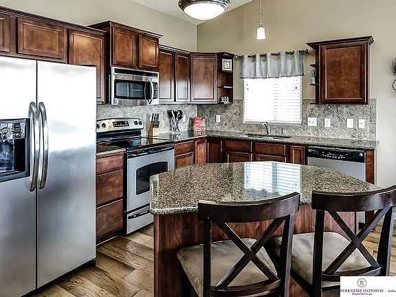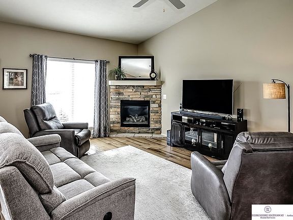 Spacious Millard Ranch Villa! Very open concept with vaulted ceilings! Eat in kitchen with sliding door. Gas Fireplace in large living room. Newer Picasso hickory scraped engineered flooring in kitchen, dining, & living room areas. Newer paint on main level. Main floor laundry with washer & dryer staying! Master Suite w/ double sinks & walk in closet, Another bedroom and another full bath on main. Huge lower level family room; conforming bedroom & large 3/4 bath. Lots of storage!