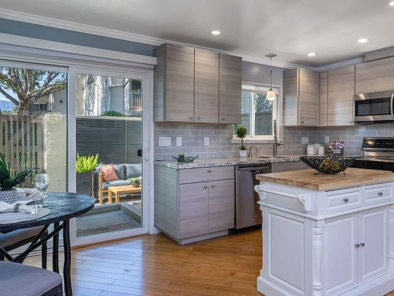 Welcome to this beautifully updated 1-bedroom, 1-bath condo nestled in the serene and highly desirable community of "The Vineyards Saratoga". Surrounded by majestic redwood and oak trees, this spacious end unit offers peace, privacy, and comfort in a prime location. Enjoy stylish bamboo flooring throughout, a cozy fireplace, and abundant natural light through double-pane windows and sliders complete with remote-controlled blinds for added convenience. The open, single-level layout is wheelchair accessible, making it perfect for ease of living. The kitchen features sleek stainless-steel appliances, while two private patios extend your living space outdoors. A nicely finished detached garage provides additional storage and convenience. Located directly across from the community clubhouse, pool, spa, and fitness center, this unit offers the best of The Vineyards lifestyle. All this, plus award-winning Saratoga schools and easy access to HWY 85, shopping, dining, and more this is a rare find you wont want to miss!
