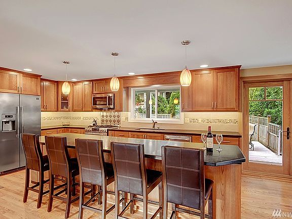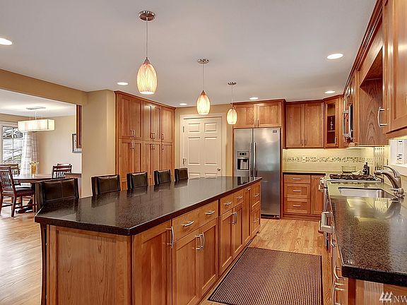 Welcome to North Shore Summit. Upgraded & remodeled features throughout. Kitchen includes custom cherry cabinetry, porcelain tiling, 11 ft island, & wet bar. Exquisite master suite w/ private office or nursery, luxurious master shower room, jet tub, heated floors, & sound system. Custom closets in all bedrooms. Plush & pleasant landscaping throughout. Enjoy the view of Mt Rainer & relaxing in one of the many patio, deck & outdoor areas.Ideal for entertaining.