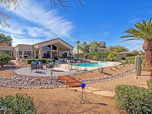 Rarely is there a home that checks so many Buyer request boxes. POOL - yes, bring the water volleyball team. Owners did. GOLF COURSE LOT - yes, over 1/2 acre improved lot. MOUNTAIN VIEW- absolutely! Very versatile floorplan - spacious enough for large parties or intimate gatherings. The original floorplan has been expanded to fit today's lifestyle. Large Great Room with Fireplace, beamed ceiling and wall of Windows overlooking the Pool, Golf Course and beyond to the Mountains. Kitchen with breakfast room, 2 bedrooms, 3 Bathrooms, original formal office/den. An additional Large Office with a multitude of use possibilities. Over-sized Garage for vehicles & golf cart. 360 degree view observation deck. Over $100,000 of improvements since 2016.