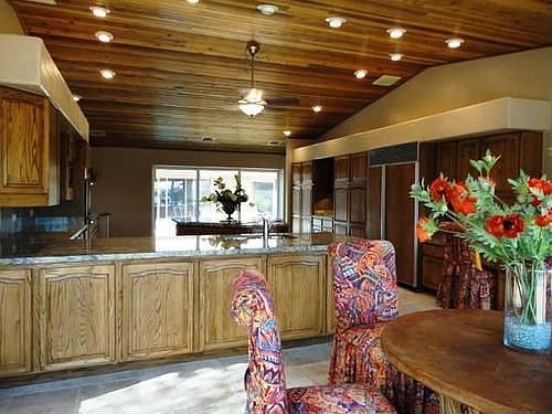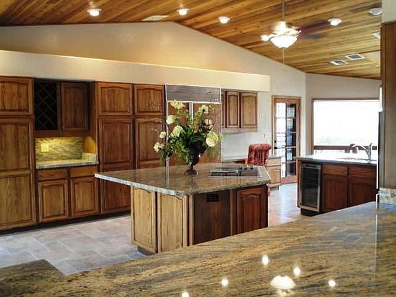 Seller will finance or consider a trade on this beautifully remodeled home. Tumbled travertine floors, new carpet & slab granite throughout. Gorgeous kitchen for entertaining w/Stainless steel appliances and plenty of cabinets. 3 Stone fireplaces, Incredible master suite offers a getaway with fireplace & plenty of closet space w/washer and dryer. Guest rooms are spacious and comfortable. The courtyard w/diving pool allows you to swim, relax and enjoy your privacy. Mountain Views fill your eyes from the front patio and kitchen/eat in area. Never lived in after remodel. You won't find another custom home like this one!
