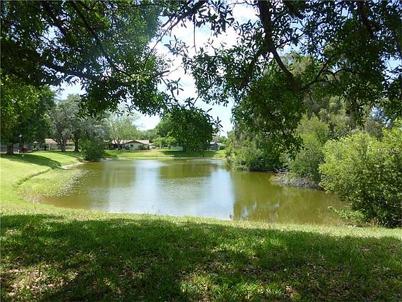 Solidly built block home with mostly original interior. Roof in 2007 and new air conditioner in 2009. Fantastic floor plan with living room, dining room and lanai having views of the lake. The kitchen is large enough to be an eat-in kitchen. A pass-thru from the kitchen for dining on the lanai. Peaceful, private view of the lake makes this home a restful place to live. Giant two-car garage for all the tools and washer and dryer. Take a look and make an offer. Great starter home.
