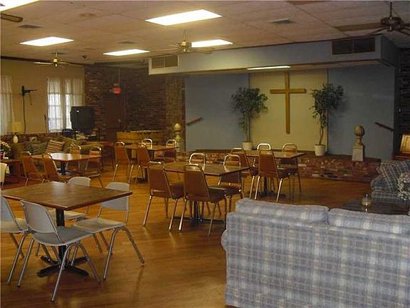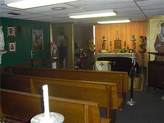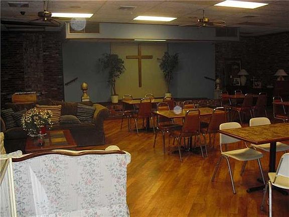 2 full floors. Main church and coffee center on first floor. Small church, bath rooms and storage rooms lower level. Lower level is rented. 2 energy efficient furnaces, A/C. High traffic area.