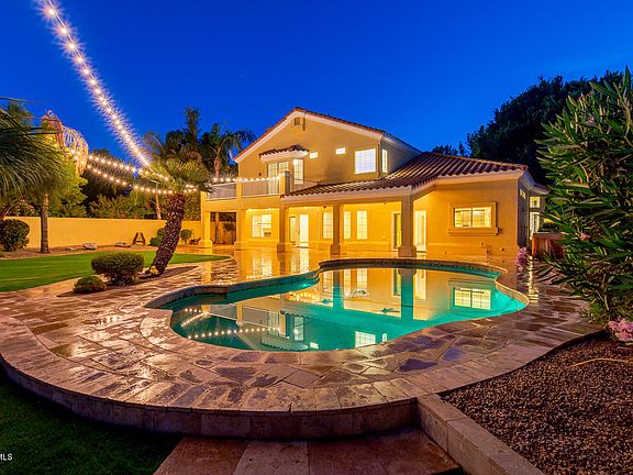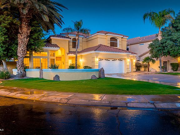 THIS HOME IS IDEALLY SITUATED ON ONE OF THE LARGEST NORTH/SOUTH FACING WATERFRONT LOTS & HAS ONE OF THE MOST OPEN SPACIOUS FLOORPLANS IN REGATTA. (A Val Vista Lakes Community)IDEALLY LOCATED ON A CUL DE SAC, THE HOME IS SET BACK WITH A LONG WIDE DRIVEWAY THAT ACCOMMODATES PARKING FOR 3 CARS DEEP AND 3 CARS WIDE IN ADDITION TO THE OVERSIZED 3 CAR GARAGE.ADDITIONALLY, THIS HOME BOASTS ONE OF THE LARGEST BACK YARDS IN REGATTA WITH A REMODELED PEBBLE TEC SALTWATER POOL WITH NEW FILTER AND VARIABLE SPEED PUMP, SALTWATER SPA AND LARGE TRAVERTINE PAVER PATIO. ENJOY THE PRIVACY AND ABSOLUTELY GORGEOUS VIEWS FROM THE COVERED ENTERTAINING AREA OR MASTER BALCONY. YOU CAN SIMPLY RELAX IN THE SPARKLING POOL OR TAKE THE BOAT OUT FROM YOUR PRIVATE DOCK THAT INCLUDES ELECTRIC AND WATER. Home features Kitchen remodeled with quartz counter tops, ice maker, and INDUCTION stove top. Leathered granite in bathrooms and laundry. There are 3 programmable thermostats. Variable speed pump and salt water pool and spa. Engineered "Reclaimed Chestnut" wood flooring. 2014 Roof underlayment replaced and brought up to code with 10yr warranty. All appliances replaced 2012. Knotty Alder cabinets. 2015 backyard remodel complete with travertine pavers. 2017 new water heater with re-circulation pump for hot water on demand. Vintage player piano is available for $5K or best offer.