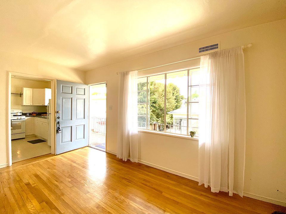 Tucked away in the rear of a charming trio of cottages, this second-floor sanctuary features hardwood floors and a private balcony, a serene retreat perfect for enjoying the California sunshine and your morning cup of coffee.