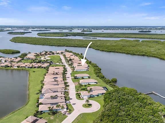 This exceptional, nearly new custom waterfront residence on Hutchinson Island offers all the modern features one would expect in a high-quality home. The welcoming foyer opens to a fantastic family room and gourmet, island kitchen overlooking peaceful Wildcat Cove. The large, screened lanai and patio are great for entertaining or enjoying beautiful sunsets after a long day. Interior features include stainless appliances, quartz countertops, endless cabinets, pantry, luxury vinyl flooring, crown molding, plantation shutters, picture window with push-button shade, energy efficient double pane impact windows, 86 inch television, walk in closet with doorway to laundry room. Exterior features include energy efficient foam insulation, whole house generator, oversized double garage with abundant shelving, push-button roll down garage screen, electrical capacity for future EV charger, lush landscaping and paver patio. Riverpointe at the Sands is a private community that has a dedicated beach access walkway, pool and pavilion overlooking the lake, tennis and pickleball. If boat slips are available at the Community Marina, you can be on the Ocean or the Intercoastal in less than ten minutes. Owners enjoy watching the space launches that light up the sky from their patio. If you love outdoor activities, this location is just South of Pepper Park Beach and just North of the Fort Pierce Inlet State Park offering walking trails, kayaking, picnicking, snorkeling, surfing, fishing, tennis, observation deck, playground, and more. Don't miss out on this impeccable home. Measurements should be verified by Buyer or Buyer's Agent.