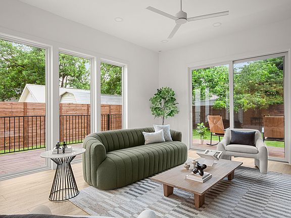 Nestled in the heart of Crestview, a picturesque neighborhood in North Central Austin. This delightful property is located on a peaceful street, just steps away from quaint cafes, lively bars, and a diverse array of restaurants, offering the perfect balance of comfort and convenience. As you enter the home, you'll be captivated by its elegant design and seamless functionality. The living area is bathed in natural light, thanks to expansive double-pane windows and multiple sliding glass doors that open to a spacious deck, creating an inviting indoor-outdoor living experience. The kitchen is a dream for any host, featuring top-tier appliances, gleaming white quartz countertops, a large island, ample soft-close cabinetry, a walk-in pantry, and a classic white porcelain farmhouse sink. The home offers 4 bedrooms, each with its own ensuite bathroom, providing a private retreat for everyone. The first-floor guest suite and an additional powder room add to the convenience. Upstairs, the primary bedroom is joined by two additional bedrooms and bathrooms, offering plenty of space for residents and guests alike. The main hallway leads to an upstairs balcony, perfect for relaxing and enjoying the evening views. The primary bedroom, located on the second floor, is a bright and airy space with vaulted ceilings and abundant natural light. Its ensuite bathroom offers a luxurious escape with a spacious walk-in shower and dual vanities.