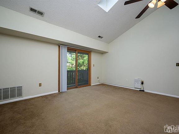 Bright and sunny top floor (3rd floor) condo. Large living room with vaulted ceiling, ceiling fan, and skylight. Sliding glass door to backyard deck overlooking evergreens. Convenient kitchen, spacious bedroom, full bath with tub/shower, and laundry closet with washer and dryer. Community amenities include pool, tennis courts, and trails. Great location, close to major roads, shopping and transportation to NYC.