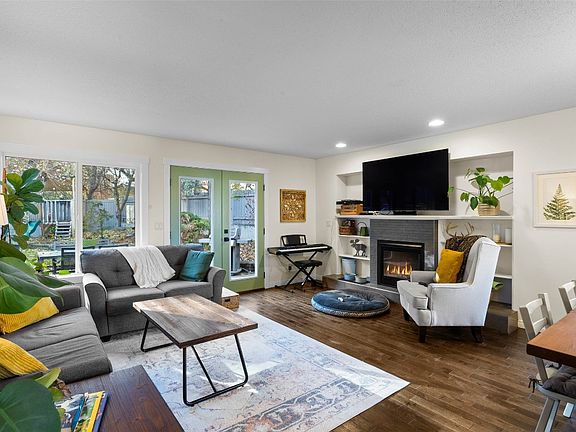 Beautifully designed kitchenGranite sinkStainless steel appliancesCozy gas fireplaceBuilt-in shelvingBright dining areaAdditional sitting room