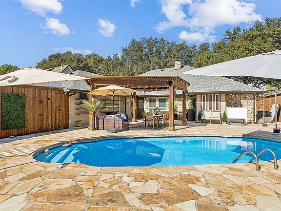 Rare opportunity to own a stunning one-story, move-in ready home boasting a backyard oasis with pool in the quiet and well-established Richardson neighborhood of Meadowcreek Estates. This beautifully maintained property features an incredible backyard oasis with a sparkling pool, a custom wood pergola, a premium board-on-board privacy fence, a putting green, and a recent $20K patio remodel—perfect for relaxing or entertaining outdoors. Inside, the home is filled with natural light and offers a spacious, open floorplan that flows effortlessly from room to room. The heart of the home is the inviting living room with a vaulted, wood-beamed ceiling, cozy brick fireplace, and custom built-ins. It opens seamlessly to a second living area that functions perfectly as a sunroom, offering lovely views of the pool and backyard. The kitchen is a chef’s delight, boasting granite countertops, an undermount sink, stainless steel appliances, abundant cabinet and counter space, and a bright breakfast area. The open layout makes it ideal for gatherings and everyday living. Additional highlights include an attached two-car garage for convenience, storage, and security, plus a carport that provides two more covered parking spaces. This home perfectly balances comfort, style, and functionality. Schedule a private showing today—this gem won’t last long!
