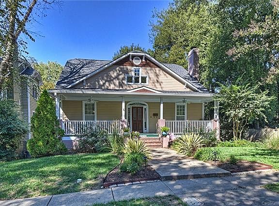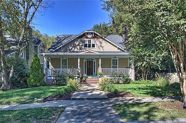 Charming Dilworth bungalow in fabulous location! Classic covered "rocking chair" front porch. Wood floors & plantation shutters in living room, dining room, kitchen & owner bedroom. Two-story foyer with abundant natural light. Large living room with soaring vaulted ceiling & gas fireplace. Spacious dining room has heavy chair rail & crown molding. Eat-in kitchen features custom cabinetry, granite countertops, tile backsplash & large center island. Kitchen flows into sunroom that opens to large deck - nice for entertaining. First-floor owner suite has walk-in closet with storage system & ensuite bath with 2 vanities, water closet, whirlpool tub & walk-in shower. Three spacious secondary bedrooms upstairs (don't miss the hidden study nook in bedroom 2!) Basement level has two unfinished areas that could be used for exercise equipment, workshop, storage, etc. Huge 2+ car garage! Great opportunity to live so close to East Boulevard and South End attractions - easy commute to Uptown!