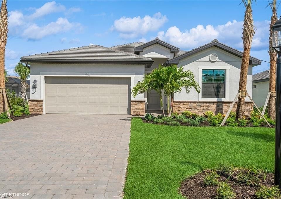 Luxury Living in Verdana Village! Nestled on a private lot on the lake, 4-bedroom, 3-bathroom Trevi model single-level home. With a two-car garage with epoxied floor. This home is move-in ready for those seeking comfort, convenience, and an exceptional lifestyle. Designed with modern elegance in mind, this home features hurricane-impact windows and a stunning stacked sliding glass door that fills the space with natural light. The enclosed lanai offers a perfect retreat for enjoying the outdoors in comfort. The gourmet kitchen is a chef’s dream, equipped with a stainless-steel gas range, dishwasher, disposal, refrigerator, quartz countertops, and a spacious walk-in pantry. A brand-new washer and dryer add convenience, while ceiling fans in each bedroom enhance comfort. The luxurious primary suite boasts a large walk-in closet and a spa-like walk-in shower, creating a private sanctuary within the home. Located in the highly sought-after Verdana Village, residents enjoy an unparalleled array of resort-style amenities. The community features an outdoor sports complex, a resort-style pool and spa, a full-service restaurant, a café and marketplace, and an expansive fitness center with a satellite gym. For sports enthusiasts, there are both indoor and outdoor pickleball and tennis courts, along with basketball and volleyball courts. A dedicated crafts bar and a vibrant calendar of weekly community activities provide endless opportunities for relaxation and social engagement. Perfectly situated just minutes from shopping, dining, entertainment, I-75, and RSW International Airport.