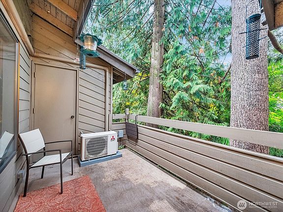 Welcome home to this serene top-floor end unit tucked in the trees of desirable Lake Forest Park—just 20 minutes from Seattle! Enjoy effortless commuting with the new light rail station less than 10 minutes away. Thoughtfully updated with new appliances, W/D, replaced window panes + custom blinds, newer water heater, and energy-efficient mini-split A/C. The vaulted ceilings, cozy wood fireplace, and private deck overlooking lush greenery create the perfect retreat. Includes covered parking and two storage units for convenience. The well-managed HOA recently replaced all roofs and has no rental cap—live in comfort or invest with confidence. Located in the award-winning Shoreline School District, close to Lake Washington, parks, and shopping.
