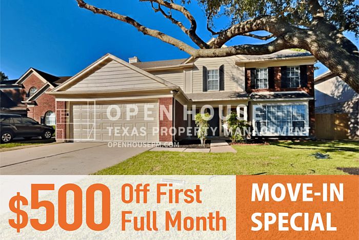 Charming 4 bed, 2.5 bath, 2,416 sq ft home in Humble! Open kitchen concept with updated counters. Primary suite with attached bathroom. Spacious backyard, great for gatherings! Pets accepted on a case by case basis. The Fireplace is decorative. Schedule your showing today! This home is as-is.