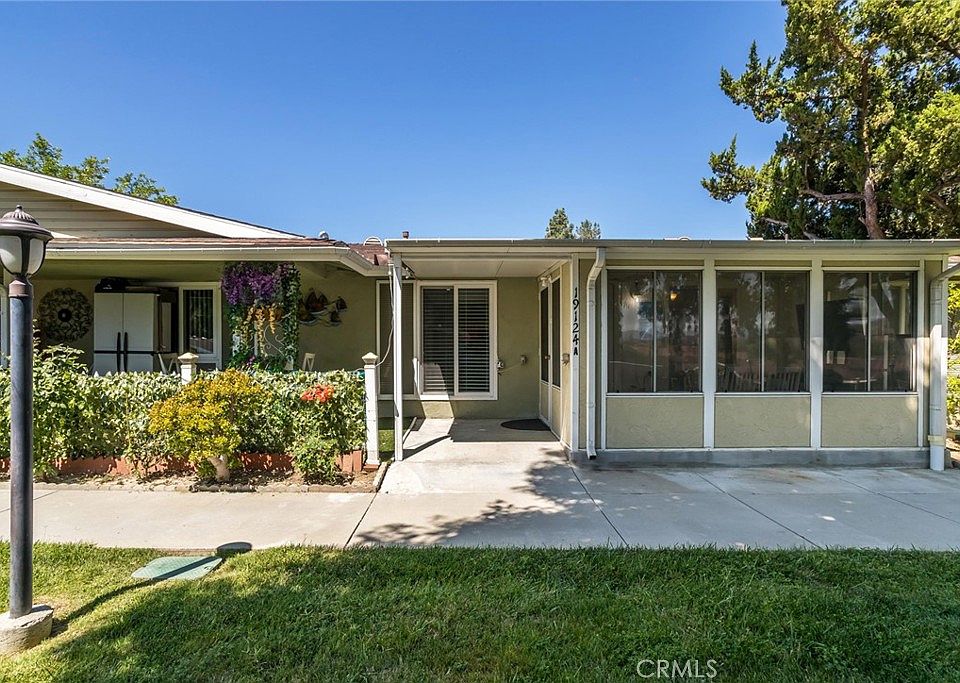 Welcome Home! That's the warm greeting you'll receive upon entering the gate of this vibrant 55+ active community. Relax and enjoy the privacy of the enclosed patio which overlooks a lush greenbelt with peek-a-boo mountain views. Inside you're welcomed by a beautifully tiled open floor plan with high ceilings and recessed lighting, which continues throughout the home creating a bright and spacious ambiance. The kitchen features abundant wood cabinetry, elegant marble countertops and included appliances. The microwave has a vented exhaust fan, providing cooking functionality. The primary bedroom features mirrored closet doors and an adjoining full bathroom with grab bars for safety and convenience. The secondary bedroom includes a private half bath, perfect for guest comfort. Included in the sale and conveniently located within the home is a stackable washer and dryer. For added peace of mind, the home also features a newer HVAC system. This home is perfect for those seeking a quiet yet active lifestyle in a well-maintained community. All utilities in the community are underground and the amenities include a newer refurbished pool and hot tub (2023), auditorium, clubhouse, exercise room, game room, wood working, ceramics, shuffleboard, horseshoe court, basketball, picnic, BBQ's, lawn bowling and 2 GOLF courses! The HOA fee covers trash, water, hot water, sewer, building and roof, landscaping/gardener, special cable TV offer, insurance and more! Gated entry with guard and patrols 24/7/365.