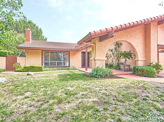 Porter Ranch home with Views, Views, Views! You can see for miles in this peaceful, magical setting! A view from the front yard as well. An opportunity like this doesn't come on the market very often, a brilliant sparkly view and yet you are not winding for miles to get home. All this and a flat street, perfect for bike riding and taking a stroll! Single story, high ceilings and open floor. Bring your imagination and flair and make this your dream home. Award winning schools, Beckford, Nobel and Granada. Single story sprawling pride of ownership neighborhood. Soaring ceilings in Living Room, Family Room and Master Bedroom and very impressive entry with double door beveled and leaded glass doors. Living room is very spacious with a nice brick fireplace. Formal Dining room and breakfast nook! Walls of glass, allow you to see this great view and still a spacious yard with a sizable patio. Extra wide side yards and mature landscaping. This is a must see home, walk to shopping, Beckford Elementary, restaurants, Whole Foods and transportation.