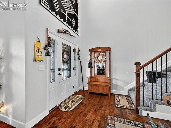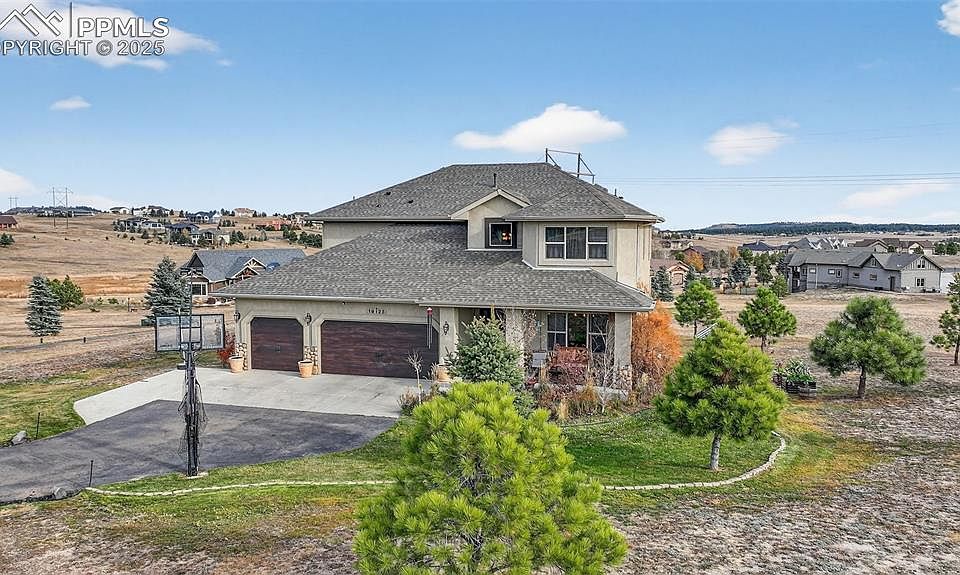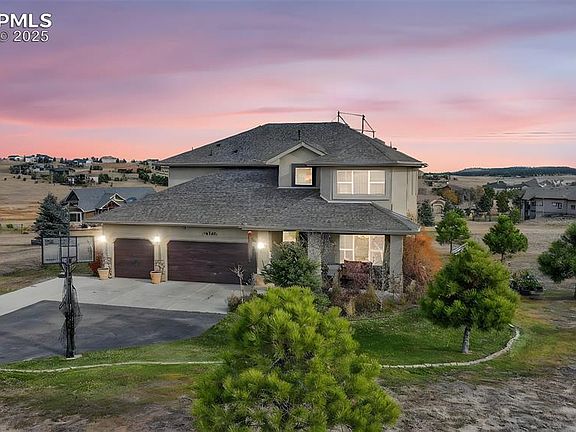 This gorgeous stucco home in prestigious Kings Deer Is situated in a quiet cul-de-sac on 2.5 acres. An area of high-end homes & peaceful surrounds. enjoy the Colorado sunrises & sunsets from this spacious 5 Bed/4 bath home that has extensive beautiful hardwood floors throughout the main level. Easily entertain in this open concept home as the kitchen flows nicely to the breakfast nook & living room which features a 3-sided gas fireplace & walkout to the back deck. The kitchen is a delight & includes stainless appliances, walk-in pantry, large island & counter bar, & lovely granite counters. separate formal dining/sitting room, laundry, full bathroom & bedroom/den complete The versatile main level. The massive upper master suite is a peaceful retreat with a sitting area & large windows that let in plenty of natural light. Additional walk-in closet & beautiful 5 piece bath complete the suite area. There are two additional bedrooms & full bathroom upstairs. The lower level has a rec room, 5th bedroom, full bathroom & additional room to expand for another bedroom & bath, this area is currently the work out room. Must see!