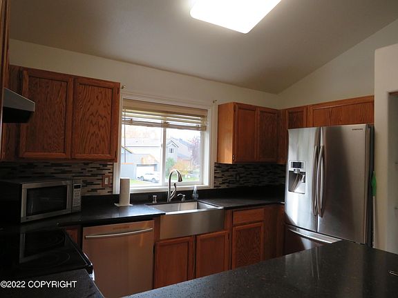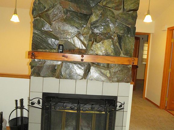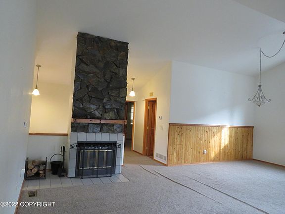 Beautiful home, soaring ceilings, fireplace with rock facing, open concept, large kitchen with granite counters, pantry, snack bar, huge master suite with private bath; two other bedrooms have direct access to bath. Knotty pine wainscoting in dining room. Backs to miles of lighted, paved trails.