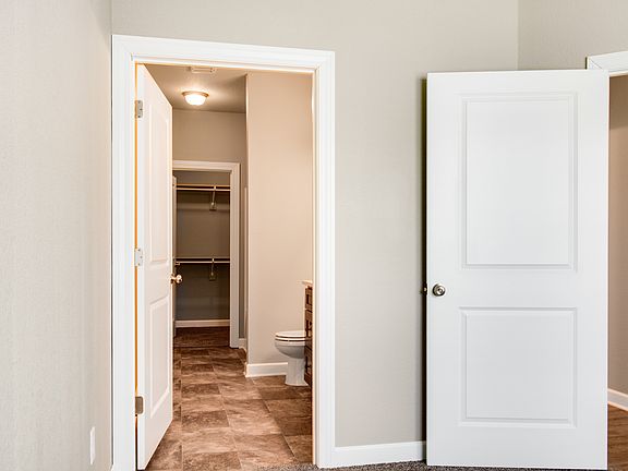 Walk in closetLarge showerGranite countersDouble vanityStainless steel appliancesVinyl plank flooringInviting front porch