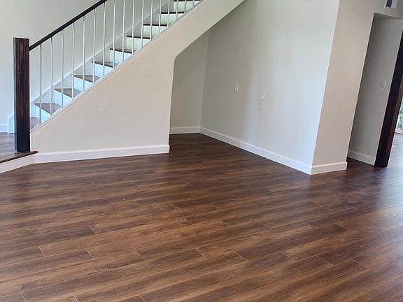 Completely updated two-story townhome with large private patio and attached 2 car garage. You will fall in love with the spacious living room and open concept updated kitchen. Upstairs are three large bedrooms. You will find beautiful hardwood-like floors and recessed lights throughout. The community features a pool, tennis courts and grassy play area. Tenant pays all utilities. $500 pet deposit