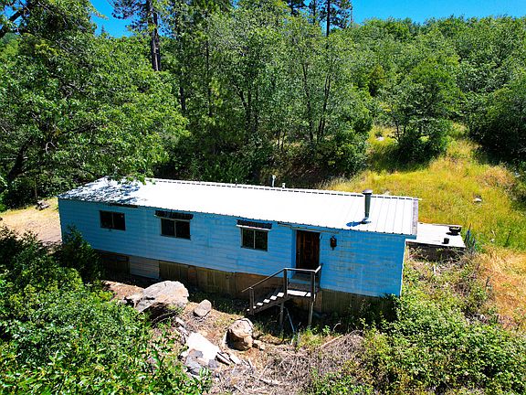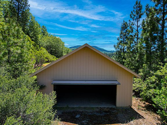 The mobile home is in need of major repairs. Serene parcel with mountain VIEWS and a flowing CREEK with a small waterfall! This piece of property sits on 3.39 acres, providing privacy and one of the best building sites. Riparian rights to the creek are a unique bonus. The creek is the source of water for the property. A nicely built, spacious 4-car garage offers ample storage and a workshop area. There's power to the mobile and to the garage. Cedar, oak, cherry, and apple trees adorn the property. You can even hear Montgomery Creek in the distance! Let this property be your great escape.