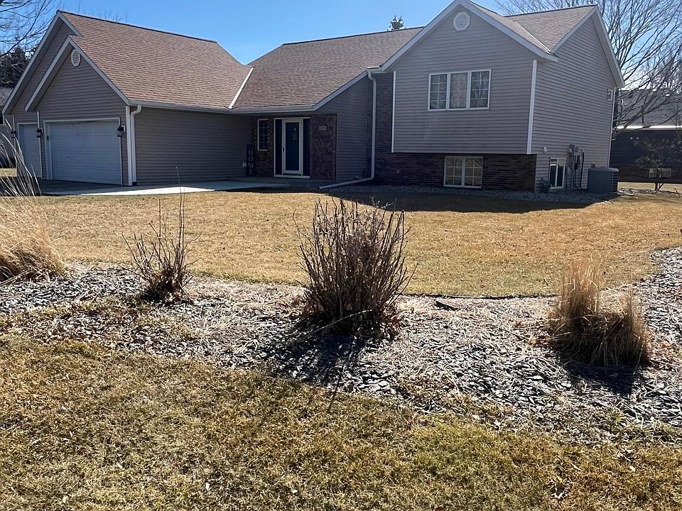 4 Bedroom, 2 bath split foyer home on a corner lot. Exterior is maintenance free: Brick/stone and vinyl siding, Composite decking, New roof (2023). Large 3 stall garage with upper level storage. Upper bathroom is completely remodeled with a huge walk-in shower. Lots of storage throughout the house. In ground sprinkler system.