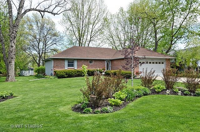 Beautiful ranch on a huge professionally landscaped lot in park like Dugan Woods subdivision across from Rich Harvest Farms. This home shows pride of ownership both inside and out. Warm wood trim , solid 6 panel doors, hand carved oak fireplace mantel, built in oak buffet and incredible views of the natural surroundings give this home a resort like feel. Relax in the lower level recreation room complete with custom built 6 stool wet bar or enjoy fresh air on the deck and separate screened in Gazebo. New roof, recently stained cedar siding and cement drive complete the curb appeal. Solid as a rock out building (15 x 21) was constructed to house a large boat so bring your toys. Only 5 minutes to I88 and shopping. Have the best of both worlds in this quality built home in a great setting