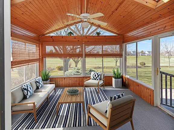 Overlooking the 13th green at Ironwood Country Club, this ranch is located on a quiet cul-de-sac in one of the most highly sought after locations in Bloomington-Normal! This zero-lot ranch offers 2 spacious bedrooms on the main floor, a SPRAWLING open family room / dining room, a large kitchen w/ granite counter tops and a pass through to the vaulted sun room! The 3 season's porch off the sun room offers electric heat, a cathedral ceiling and breathtaking views of the golf course! The large master bedroom boasts FOUR closets and an remodeled en suite bath w/ a double vanity and tiled shower! The finished basement offers a 29 x 24 family room and plenty of additional storage! 1st floor laundry! The 2 car garage includes a 4 x 6 closet and a golf cart garage door! A must see home that is in a fantastic location and priced to sell!