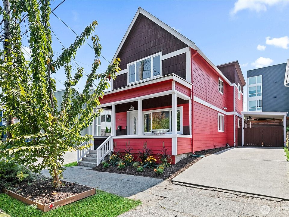 A classic Seattle craftsman with a spacious layout and dreamy front porch! Thoughtful updates include new kitchen appliances, carpet, and bathroom and light fixtures—truly turn-key. High ceilings and abundant windows flood the main floor with light. The flex room off the kitchen makes a perfect dining nook, home office, or play space. Upstairs you’ll find two large bedrooms and two baths, with one bedroom easily functioning as two! Enjoy 3 dedicated parking spaces, an attached carport, fully fenced backyard, basement storage, and an unbeatable location close to coffee, groceries, restaurants, parks, and shops. Excellent freeway access for weekday (or weekend) commutes. Pre-inspected and ready for you!
