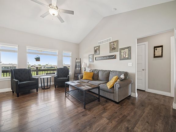 Multiple offers. Offer deadline Saturday 6/29/24 at 5:30pm. Upgrades throughout! This home is a blend of luxury and modern design with lake views from nearly every room. Nice-sized living area featuring vaulted ceilings opens up to the gourmet kitchen which boasts beautiful quartz countertops, a work island eating bar, cabinets with pull-out drawers, and walk-in pantry. Enjoy the convenience of a main floor laundry room with luxury vinyl flooring. Well-planned split bedroom layout. Master suite has coffered ceilings and ensuite bathroom with double sinks, granite countertops, walk-in closet, and tile flooring. Full walkout lower level contains a rec room with surround sound, full wall of customized built-ins framing the electric fireplace, and a wet bar with rough-hewn edged granite. Outside, relax on the covered deck or enjoy the large patio with curved limestone walls, built-in grill, while gathering around the firepit. Huge cul-de-sac lot with playset & sprinkler system is beautifully maintained & landscaped. Stunning backyard design takes advantage of the lake views and direct access to the lake where fishing is allowed. This all electric property perfectly combines luxury and functionality, making it the ideal place to call home.