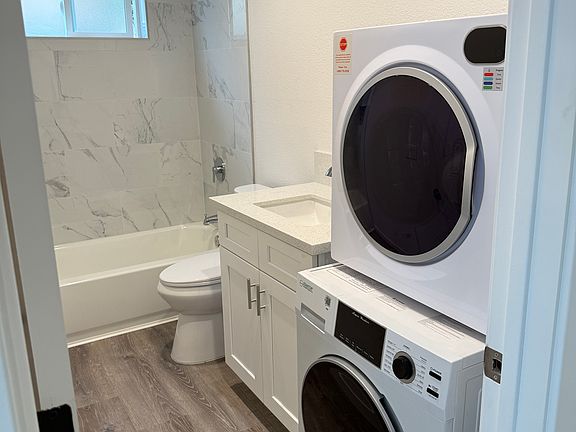 Brand-new 2-bedroom, 1-bath unit, built in 2025 and never lived in. Luxury vinyl plank flooring and stainless steel appliances. These all-electric home is thoughtfully designed with solar panels, Tesla Powerwalls, and energy-efficient systems. This unit offer a private yard with new turf, perfect for outdoor enjoyment and low maintenance. Located at the back of the property, they provide peace and privacy while maximizing functionality and appeal. In unit washer and Dryer.