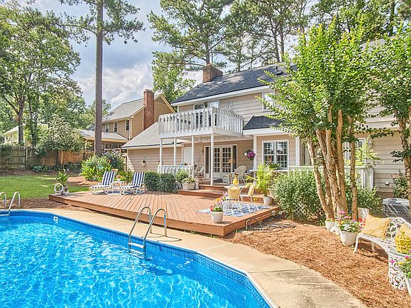 Nestled on a lush 0.55-acre lot in highly desirable Valley Estates, this home has been lovingly cared for by the same owners for over 40 years, and is now ready for its next stewards. With solid bones, a functional layout and tons of potential, it's a perfect canvas for your updates, vision, and personal touch. The expansive backyard is a private, serene retreat! Beautifully landscaped with a sparkling in-ground pool and extensive deck space for entertaining! The large detached 2-bay garage/workshop (22'x32') offers endless possibilities...Art Studio/Pool House/Guest House, or the perfect place to restore your vintage MG + store your Carolina Skiff! Also - NO HOA! Plus a brand NEW roof (12/2024)! Inside, this home offers a warm and inviting layout with spacious living areas, four bedrooms, and charming touches throughout—including two fireplaces (one in the Primary suite), a wet bar in the family room for entertaining, and a private deck off the Primary bedroom overlooking the tranquil backyard, that's the perfect spot for morning coffee or evening unwinding. There's also loads of storage with a HUGE walk up attic, basement, and a 2nd attic over the garage. INCREDIBLE location, tucked in a peaceful, established neighborhood, just minutes to grocery stores, Crabtree Valley Mall, Shelley Lake, North Hills, I-440, I-540, RDU, parks, trails and all of Raleigh, this home offer space to connect, grow, gather, and plant your roots!