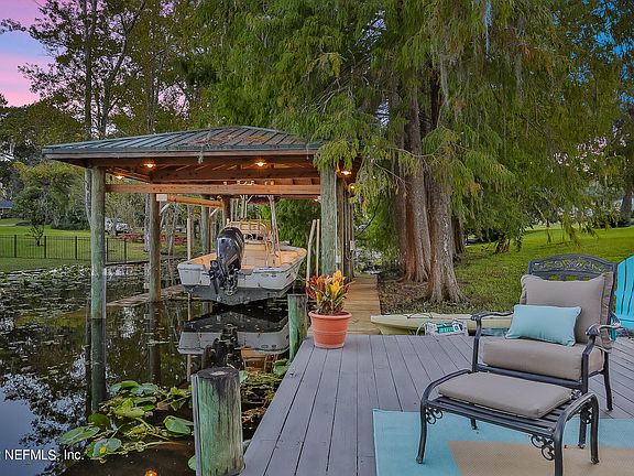 Multiple offers H&B due 10/13 @ 7pm. Absolutely stunning coastal retreat with direct access to the St Johns River. Home has been completely remodeled inside and out and boasts a standing seam metal roof, 1200 square foot detached garage, boat lift and new salt pool with cabana and spa. The owners have lovingly maintained and constantly updated. Nestled under the century old oak trees with amazing views of the St Johns River from the front and the back , this is truly a one of a kind property. Enjoy a day on the river and then relax in the spa with a cocktail while you watch a game on the TV. Live the Florida lifestyle at its finest! Great schools and close to lots of shopping/restaurants. No HOA so bring all of your toys! This is a property you need to see to truly appreciate. Kitchen has abundant storage, solid wood soft close cabinets and taj mahal quartzite counters in a leathered finish. Accented with white subway tile backsplash, custom wood shelving and white farm sink. The family room has a gas fireplace and built in bookcase, surround sound and a wall of windows to enjoy the peaceful views. Master bedroom with step trey ceiling, custom window treatments and inlaid tongue and groove wood detail is stunning! The upstairs bedrooms are HUGE! Loads of character with the wood ceilings and windows seats. Downstairs bedroom has a custom murphy bed, newly updated bath and mudroom with barn door. Dock was just replaced, electric fence around the entire property, chemical free system in lieu of an aerator, pool can be controlled by an app on your phone and has all of the bells and whistles! See list of all of the upgrades in MLS.