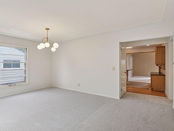 The kitchen joins with the informal dining room with a breakfast bar and counter seating for casual meals or for sipping your morning coffee. The well-designed kitchen boasts easy-care flooring, abundant rich cabinetry, and expanses of countertops for meal prep. Sunny windows, attractive pendant lights and recessed lighting illuminate your workspace,. The main floor family room will become the heart of your home, with a soaring vaulted ceiling with recessed lights, soft new neutral carpet, and two generous closets for storage. Take the party outside! Double doors provide access to the large deck in the peaceful backyard.