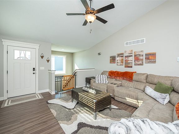 Welcome home! This home presents 3 bedrooms, 3 bathrooms, and 2 stall garage. This open floor plan offers vaulted ceilings, a spacious living room, and electric fireplace. Quartz countertops in the bathrooms and kitchen. The kitchen has a beautiful cream and grey color scheme, with subway tile backsplash and stainless steel appliances that stay with the home. The home boasts flat craftsman trim, a convenient mudroom off the garage housing the washer and dryer, and built-in locker. The master bedroom features a gorgeous tray ceiling, large walk-in closet, walk-in shower, and dual vanity sink. The finished lower level offers additional living space with a 3rd bedroom, full bathroom, wet bar, and large storage room. Additional features include: insulated garages door, smart home security system, and water filtration system. Schedule a tour today!
