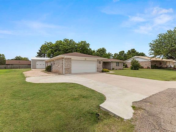 LOCATION LOCATION! East side of Perry Golf Country Club in Lakeview Addition! Looking for a 1,200 sq ft insulated shop w/concrete access? Check out this fantastic opportunity in North Perry. Extremely well maintained and meticulously clean 1,569 sq ft brick home, split floor plan; updated AND move-in ready. This home shows itself. Beautiful details throughout from flooring, updated bathrooms, granite, built-ins, ton of storage, vinyl windows, walk in storm shelter INSIDE, to the vinyl pergola covering patio with sidewalk thru manicured lawn to shop outside. A few more amenities include the leaf guard guttering and appliances to convey! Golf cart access to the Country Club-be sure to inquire about the Country Club summer pool pass! Property priced on point with appraisal (on file in MLS docs) Call today!