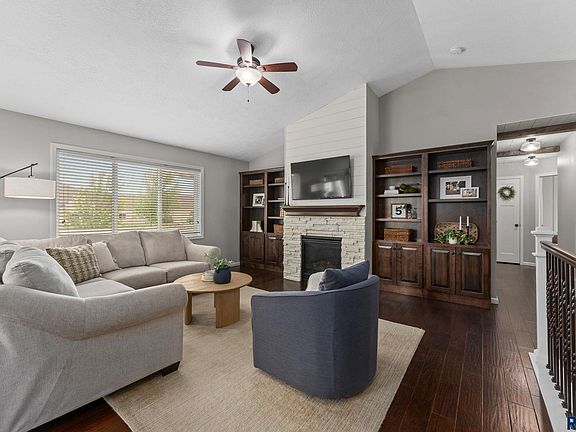 Vaulted ceilings and natural light create an open, airy feel from the start. The main level offers three bedrooms, including a spacious primary suite, along with a warm, inviting living room featuring a gas fireplace and custom built-ins. The kitchen is generously sized with stainless appliances, a gas range, plenty of cabinet and counter space, and a pantry. A built-in bench anchors the dining area, with a walkout to the deck and pergola-covered patio overlooking the private backyard.