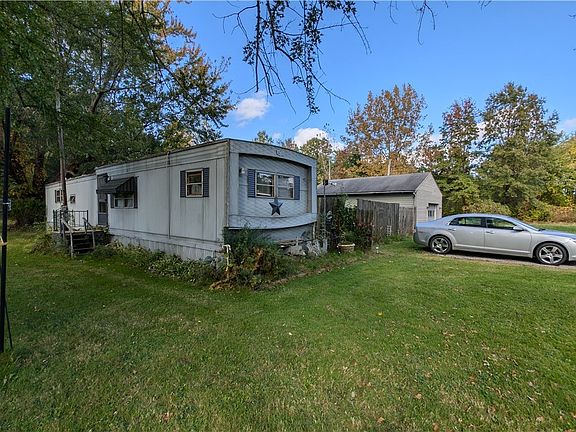 Looking for a quiet retreat? This 2-bed, 2-bath mobile home on nearly an acre offers peace and potential! It’s got a decent house roof, solid structure on piers, and all the essentials—natural gas, electric, public water, and septic, plus a 1+ car garage/workshop! The woods in the back offer extra privacy. Needs some TLC but it’s a prime location for an affordable year-round home or a vacation spot. Taxes are super low, and the fridge and stove stay. Sold as-is, so come with your ideas and make it yours!